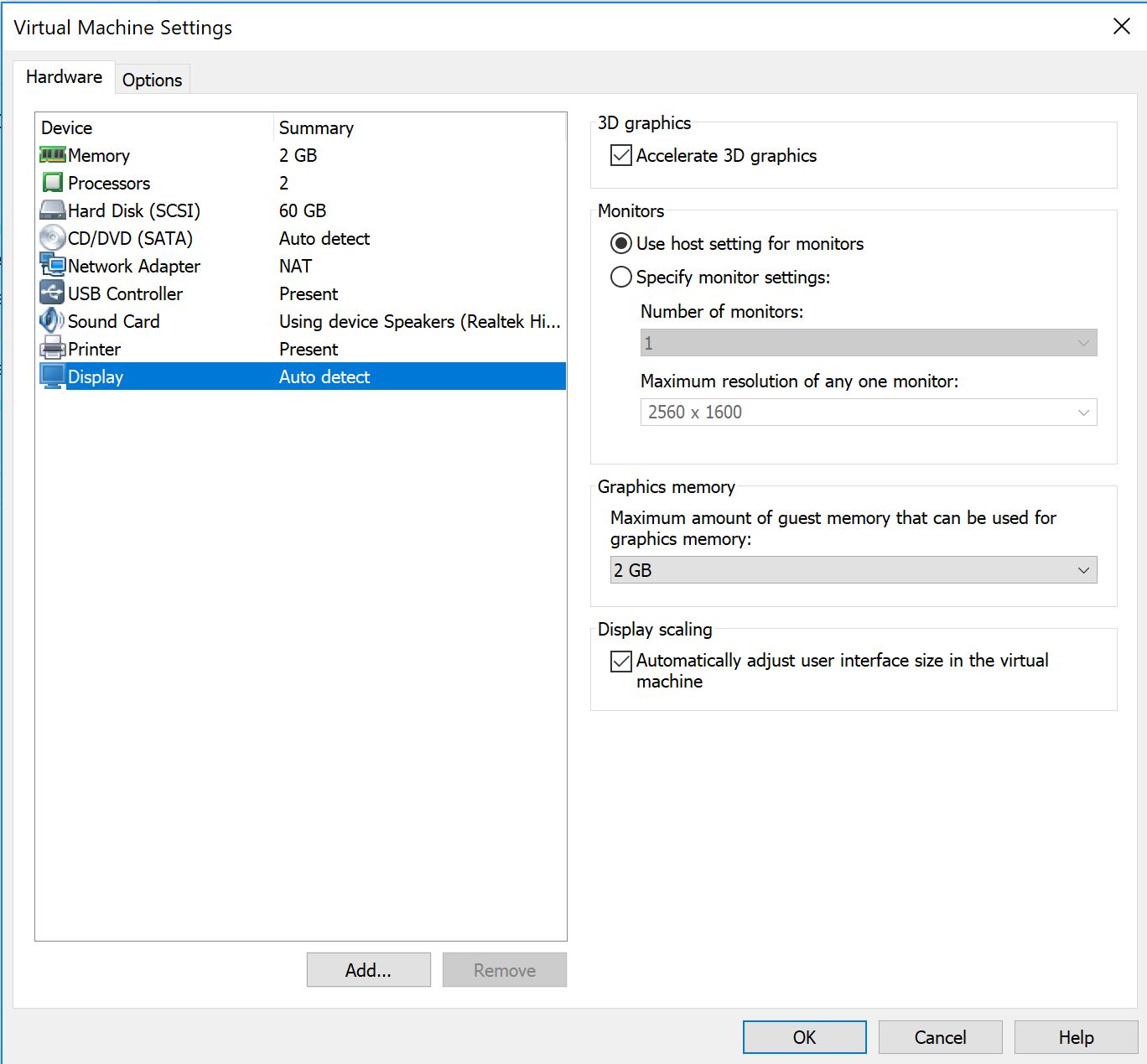 Memory = 2GB