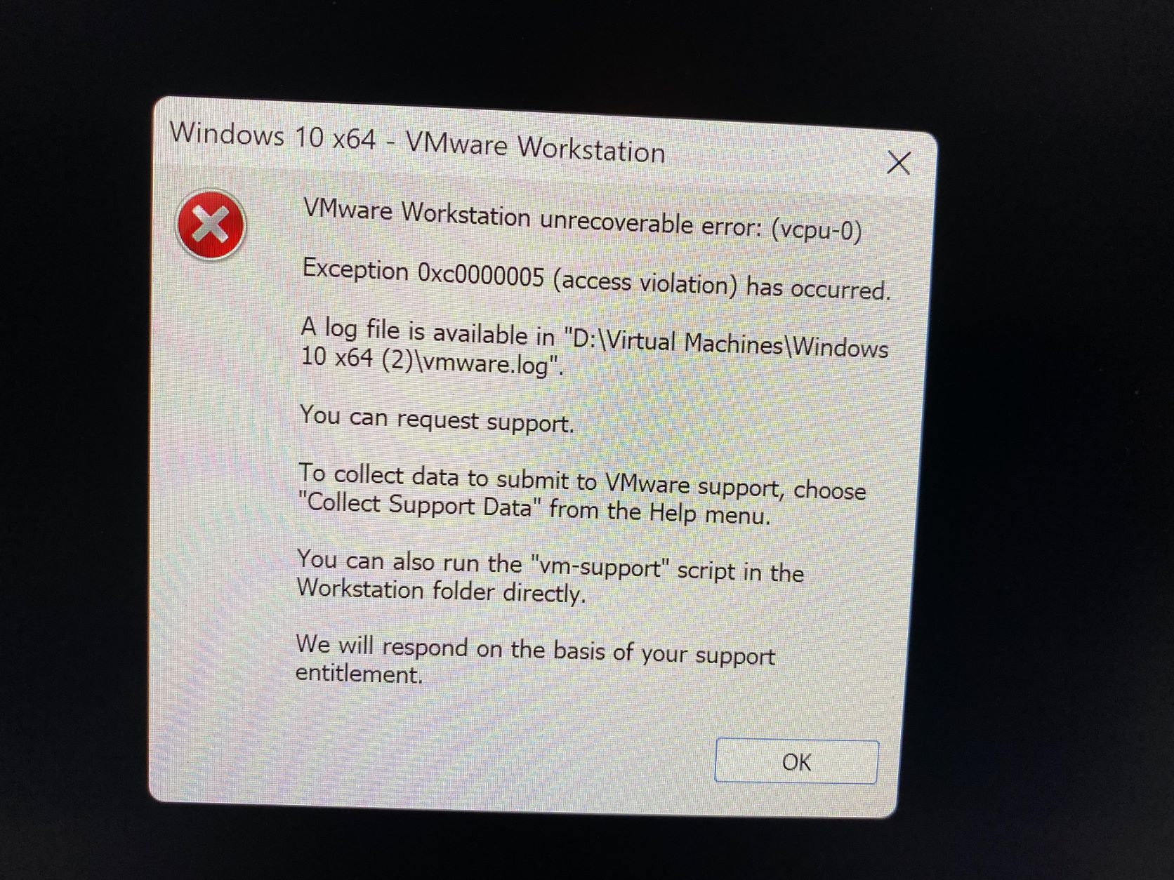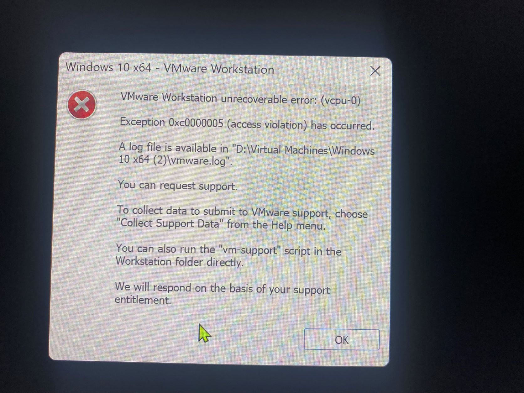Leider bin ich noch Anfänger bzgl. VMware und weiß nicht weiter. Deshalb hänge ich die Logdatei an und hoffe, dass mir jemand von euch helfen kann.