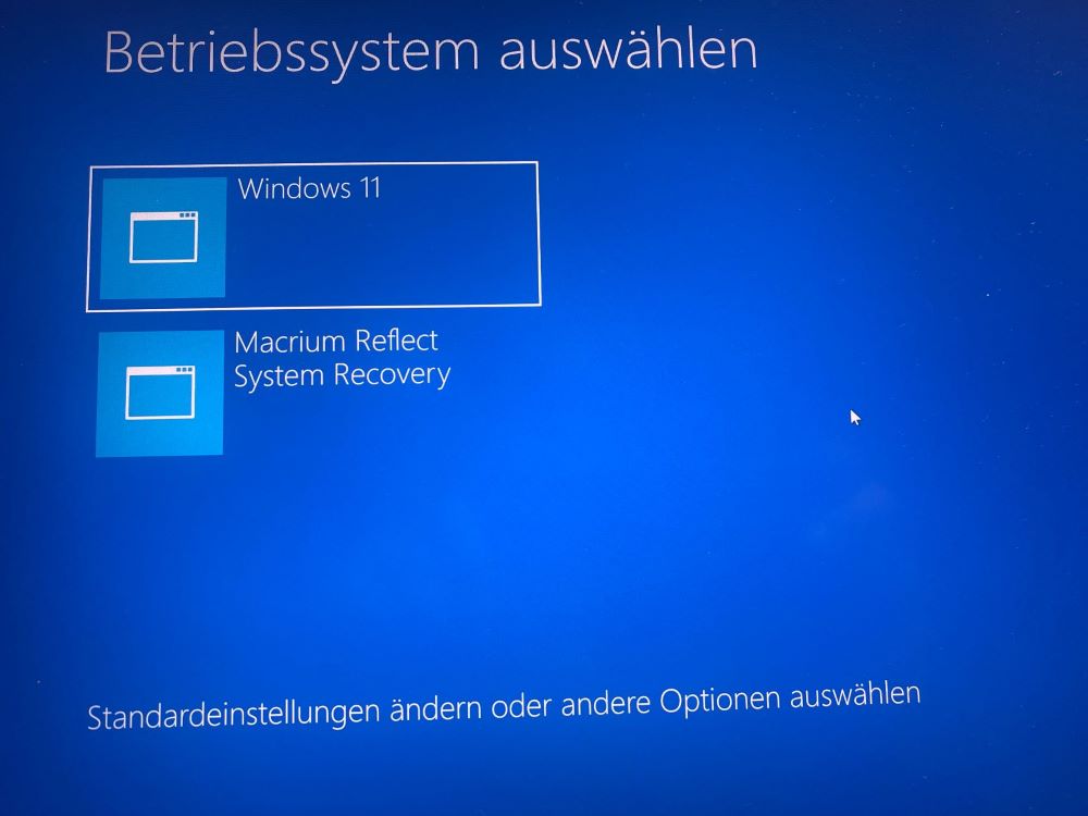 Macrium Reflect 8 hat zum booten eine Auswahl hinzugefügt, vielleicht ist diese die Bremse?