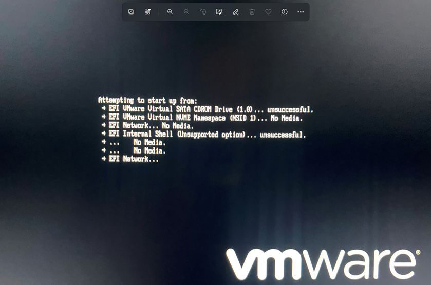 Auch habe ich Secure boot im Host Uefi/Bios deaktiviert. Hilft alles nichts. Immer wenn der Zugriff auf das Installationsmedium erfolgt - welches auch immer - geht es in einen Timout.