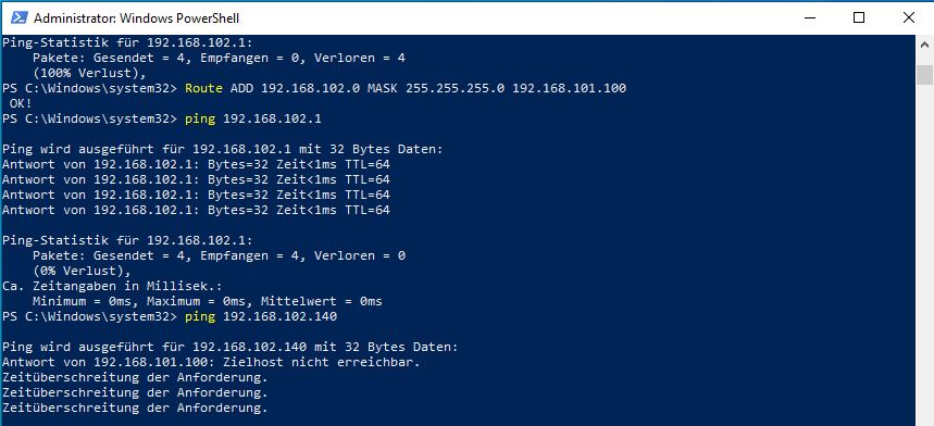 Wie man permanente Routen auf Windows einrichtet, habe ich mal überflogen. Das habe ich noch nie gemacht. Aber darauf wird es heraus laufen.