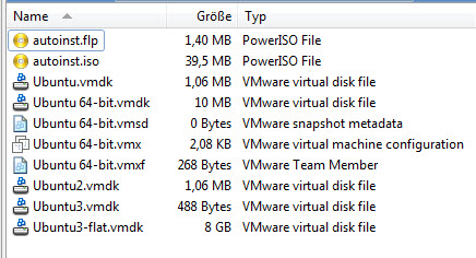 - Die "Ubuntu.vmdk" und die "Ubuntu2.vmdk" sind offenbar growable Workstation Disks, in die noch nix geschrieben wurde.