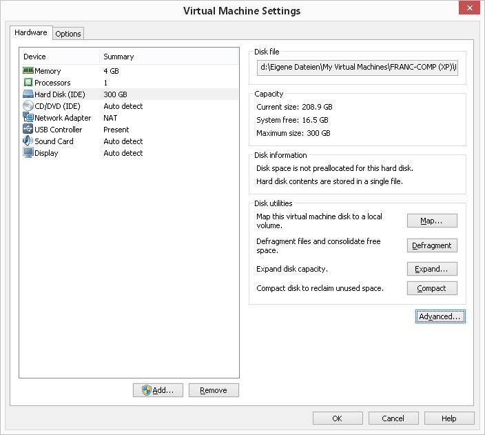 Virtuelle VHD-Festplatte in VMware - Defragmentierung und Komprimierung