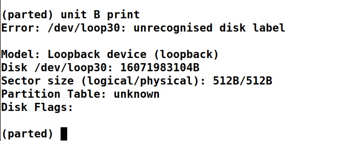 Mit parted kann ich die Informationen auch nicht auslesen. Im Gegenteil, es kann nicht einmal die Partitionstabelle eruiert werden.