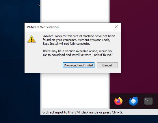 VMware Tools for this virtual machine have not been found on your Computer. Without VMware Tools, Easy Install will not fully complete.