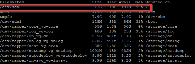 Re: VCSA 6.0 - / filesystem is low on disk space or inodes