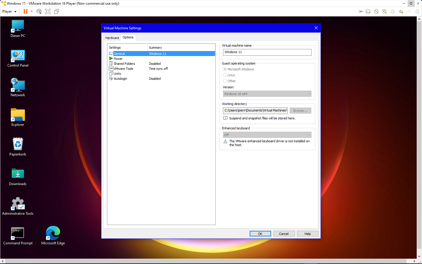 Die einzige Erklärung, die ich noch als VM-Laie habe, ist die, daß evtl. die Player Version 16.1.2 diesbezüglich eine Macke hat. Dagegen spricht, daß ein anderer User, mit dem ich in Kontakt stehe, die identische Kombination aus W10, Player 16.1.2 und W11 hat. Und dort funktioniert es einwandfrei.
