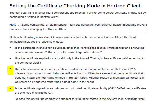 Vmware Horizon View kann anscheinend das SSL Zertifikat nicht bestätigen.