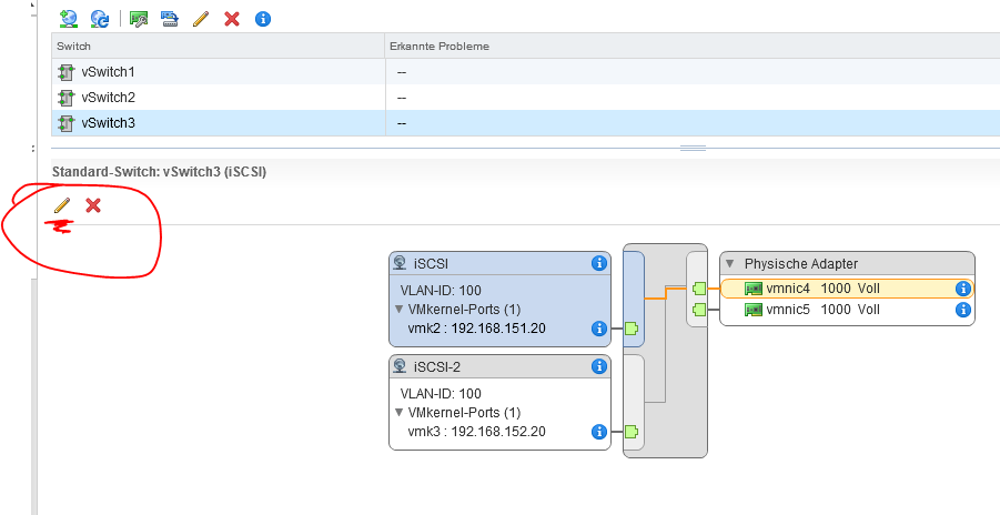 Habe ich etwas übersehen? Im physischen Switch würde ich dann alle iSCSI-Ports über eine eigene vlan anbinden.