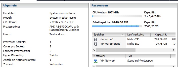 ich habe hier nur rein zu Testzwecken und zum Lernen!!! eine ESX 5.5 auf einen etwas älteren HTTPC installiert.