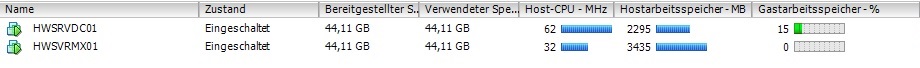 Aber sicher kannst du bei einer der Server2012 VMs den Ram reduzieren. Deinem mutmaßlichen Test-DC reichen 1-2GB ram und 1 CPU.