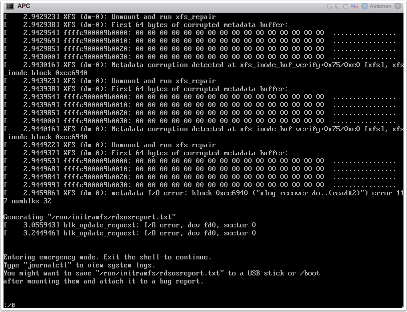 Scheint irgendwie das Dateisystem defekt zu sein. Bei einer Neuinstallation? WTF?