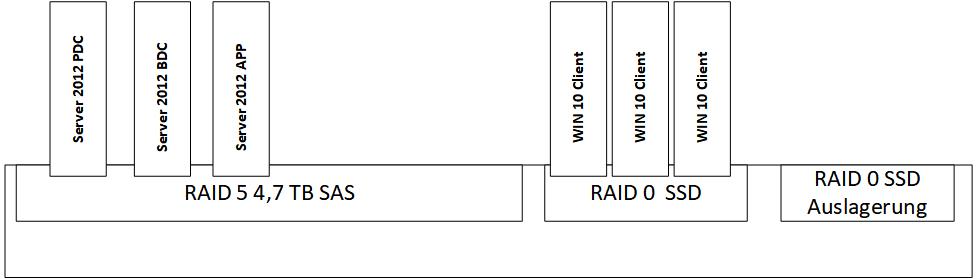 Im Raidverbund sind nur die SAS HDD. Die SSD wird für die Auslagerungsdatei verwendet.