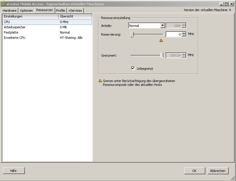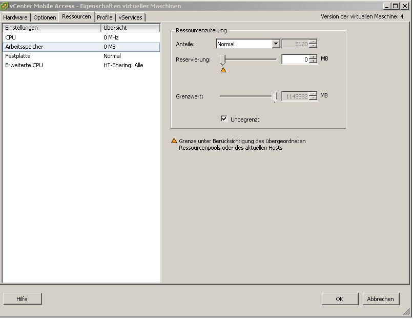 Fehler bei verschiebe einer VM in einen ressourcenpool