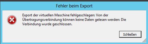 nein die VM ist nicht gelaufen. Ich habe gerade versucht die Maschine als Template OVF zu exportieren nachdem ich sie heruntergefahren hab