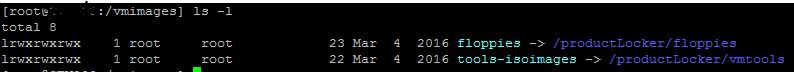 nun habe ich mich dran erinnert, dass die ISO Images zum mounten des CD-Laufwerks ja unter /vmimages liegen, also wollte ich nachschauen was mit dem ISO los ist.