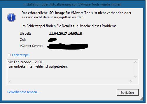 ich habe festgestellt, dass ich bei einem (6.0 Patch 2) meiner drei ESX-Hosts (6.0 Patch 3) kein VMWare-Tools Update mehr durchführen kann: