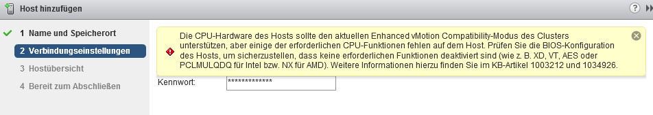 Aber selbst dann kann es zu solchen Fehlermeldungen kommen. Ich habe es nicht geschaft 3 neue gleiche Skylake alleine in einen EVC "Skylake" Cluster zubekommen.