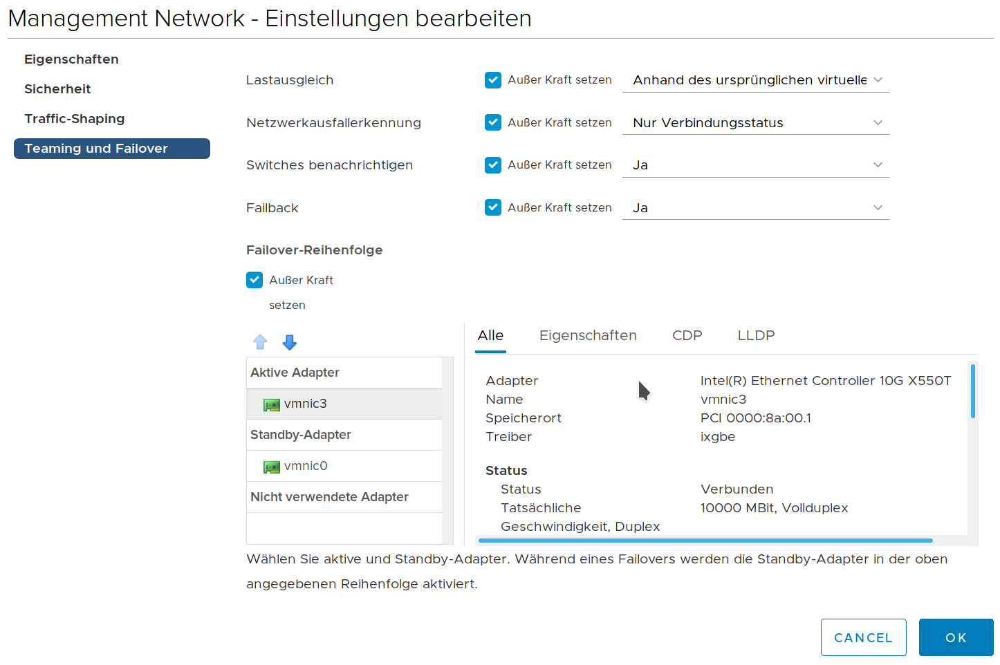 Ich gehe davon aus, dass dieser copyjob von veeam über das Management-Netzwerk gefahren wird. Die Settings hierfür sehen bei mir so aus: