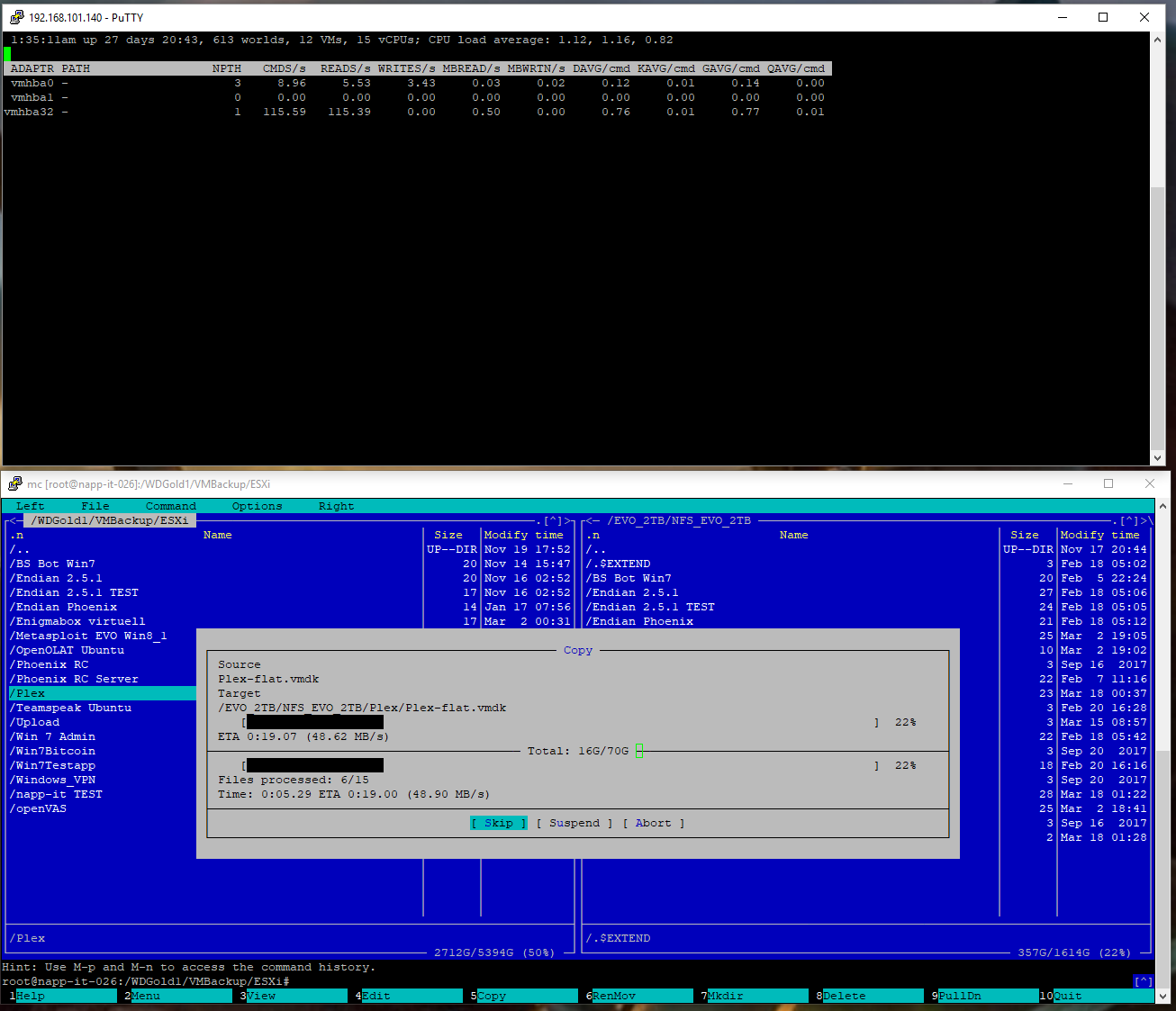 Das mit dem langsamen kopieren liegt warscheinlich an der Consumer SSD, meinte gea mal. Wobei mich 50MB/s schon sehr arg langsam dünkt.