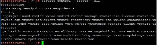 Wie oft hast du die VCSA schon gesamt neugestartet? Wenn du die gleich nach dem Neustart an der Console/ssh dich anmeldest und im Sekundentakt das --status --all machst, baut sich die Liste der running services zuerst auf und reduziert sich dann oder verbleibt bei diesem Stand so wie du ihn gepostet hast. Weil ich hatte mal das #SR das die Dienste abstuertzten und die anderen mitgerissen hatten.