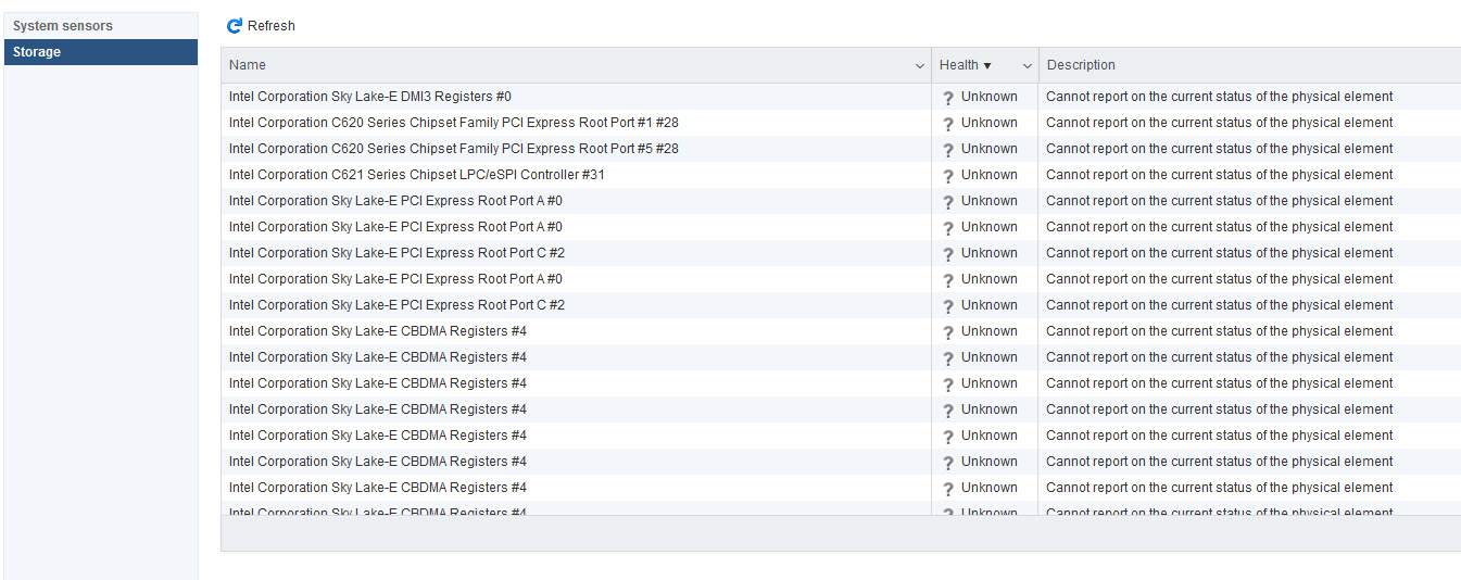 ESXi 6.7 U1 (HP-Image) / HPE ProLiant DL360-Gen10 / Cannot report on the current status of the physical element