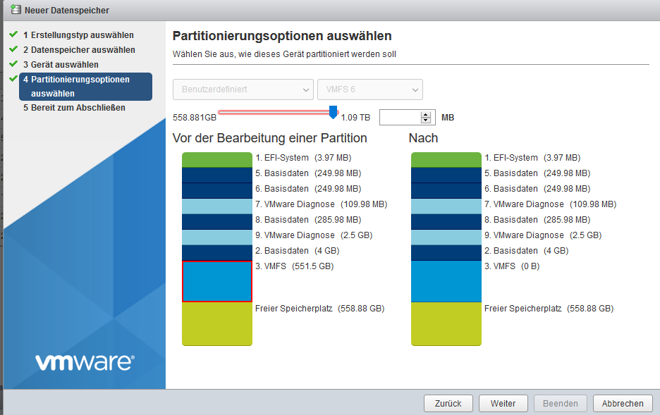 DataStore erweitern, wo zuvor ESXi drauf installiert war