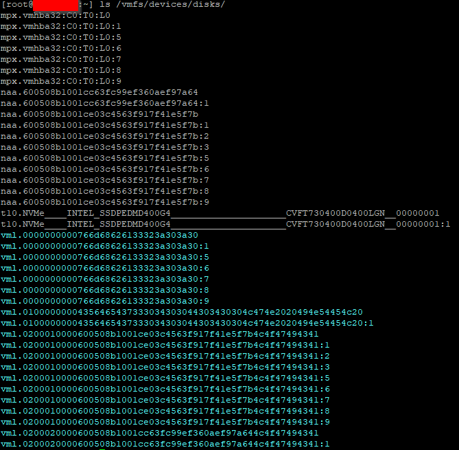 ls /vmfs/devices/disks/ gibt mir viele Einträge zurück