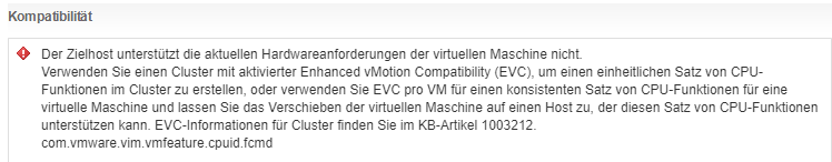 Alle drei Hosts sind baugleich mit exakt gleicher CPU. EVC wollen wir daher nicht aktivieren. Und andere VMs lassen sich migrieren.