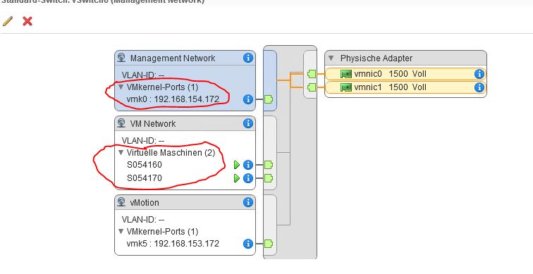 Einer der vSwitche die mit dem Thema zu tun haben hat 3 Netzwerke definiert (siehe Bild vSwitch0.jpg) der andere hat 1 Netzwerk (siehe Bild vSwitch1.jpg).
