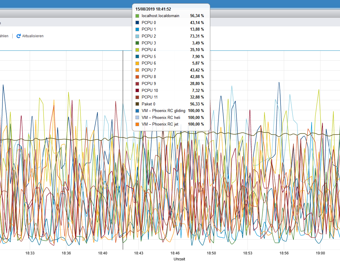 Ich glaube das war die Lösung, ja. Ich habe jetzt allen sechs Hostingbots nur 2 GHz zugewiesen, nun haben die beiden CPUs wieder reichlich freie Ressourcen. Bisschen Bastellösung, aber was solls. Hoffe nur, ich bring die Scheduler von den Hosts nicht durcheinander mit den nur halb ausgelasteten Kernen.