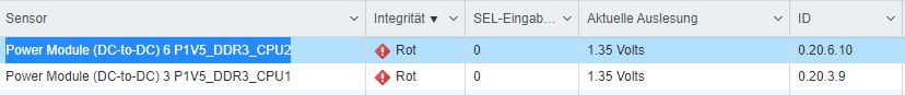 Habt ihr irgendeine Idee, ob das problematisch ist? Kann ich das irgendwie beheben oder ist der Sensor von ESXI zu empfindlich? Sind 1.35 Volt besorgniserregend?