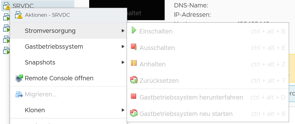 Sollte ich die Maschine im ESXI Not-Auschalten und nochmals starten ?