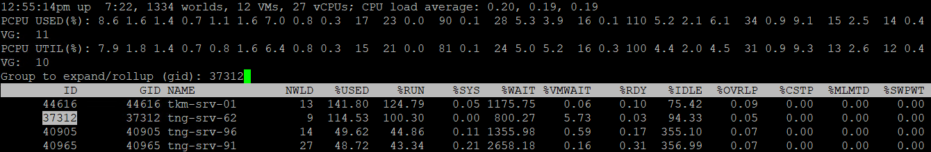 Dann war es evtl. "c" fuer cpu der doch nur "V". Auf jeden Fall ist esxtop besser geeignet als de GUi Anzeige.