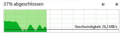 Ich habe das Problem, dass für die ersten 10 Sekunden die Schreibgeschwindigkeit bei 112MB pro Sek liegt und dann sehr schwankend teilweise bei 32 Mb/s.