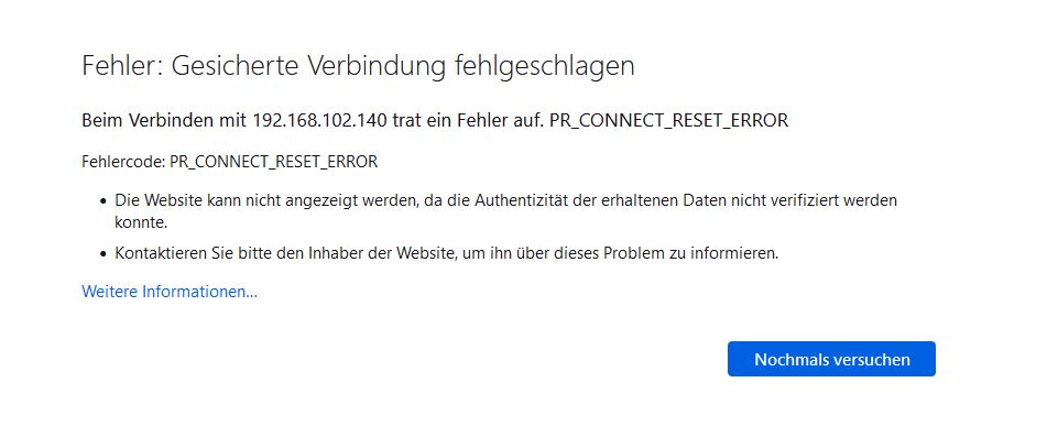 Aber es ist wohl ein Problem mit den Zertifikaten. Kann ich die für das vLAN 102 irgendwie löschen? Muss ich das auf dem Host, oder auf den Clients? Ich nehme an, dass die Clients mit den alten Zertifikaten zugreifen wollen /Spekulatius off