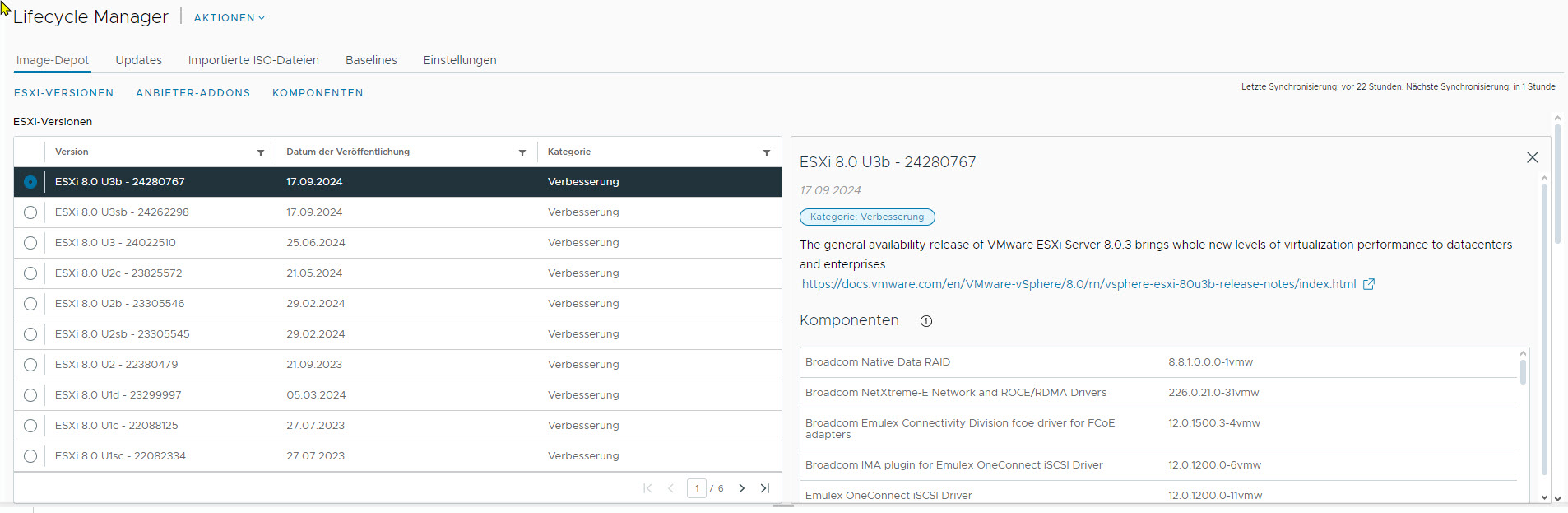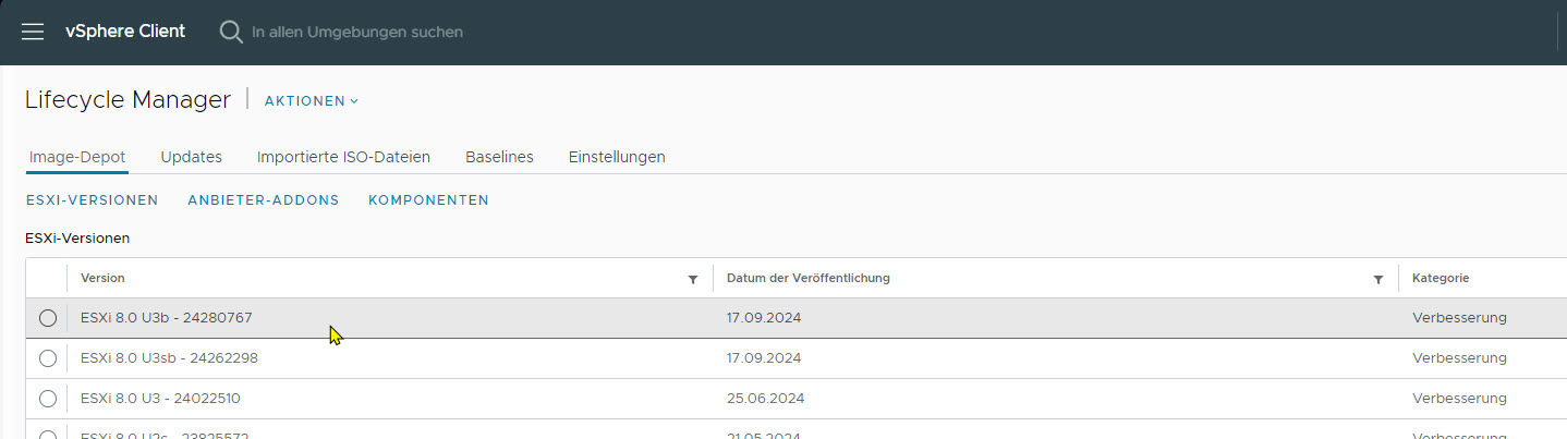Ich sehe im Lifecycle Manager diese ESX Versionen: Bild_1 und Bild 2
