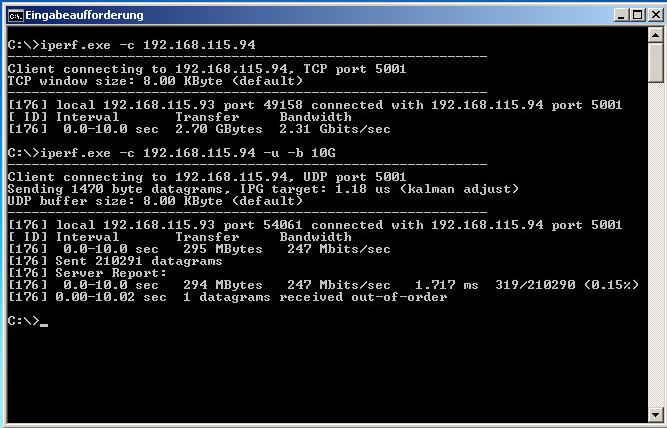 Messung iperf UDP und TCP