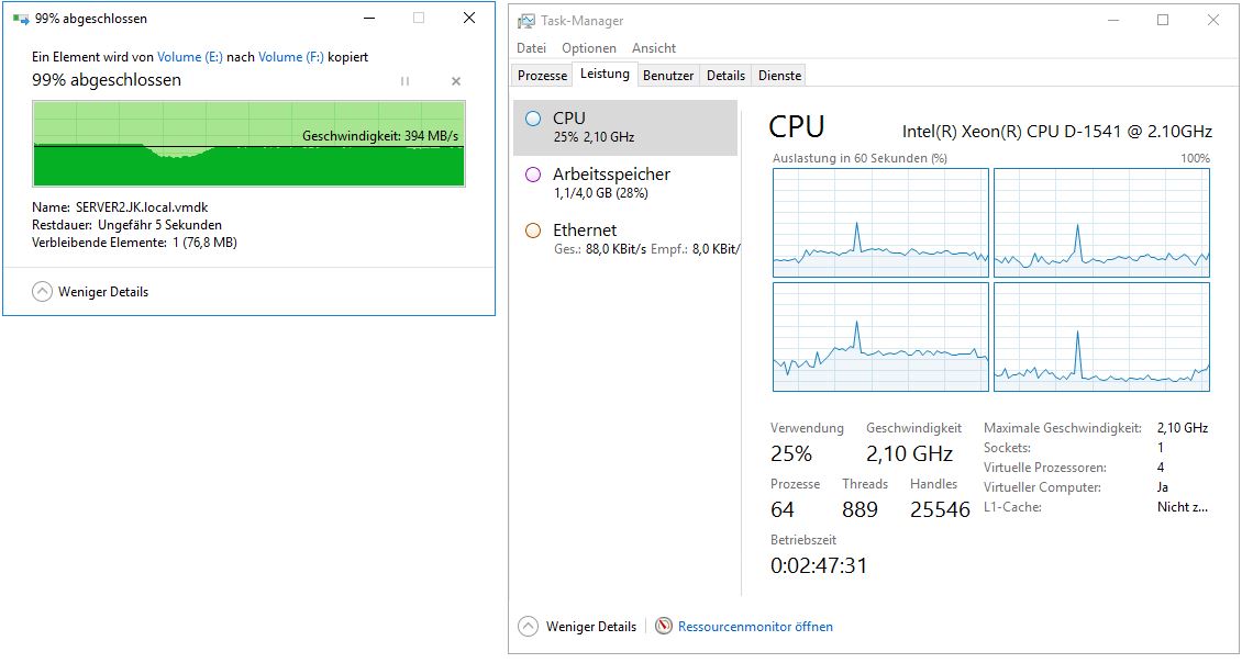 -Warum habe ich eine hohe CPU Last in der VM beim Kopieren, Windows direkt auf der physischen Maschine hat keine CPU Last (0-2%)
