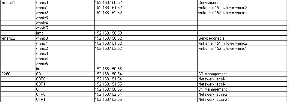 ist zwar jetzt schon ein paar Tage her, aber nun bin ich ein wenig dazu gekommen. Nun zu meiner Frage, den nach deinem Post bin ich ein wenig verwirrt. Lt. UrsDerBär müsste ich insgesamt jeweils 2 vSwitche anlegen und jeweils 4 VMkernel(iSCSI) Adapter anlegen. Ich habe aber nur jeweils physische NICS zur Verfügung.