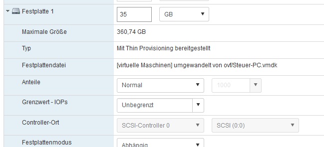 Die Steuer-PC-disk1.vmdk kann nun geloescht werden. Ich haette vermutet das die Disk dank Thinprovisioning kleiner wird aber ich vermute irgend jemand hat damals im Windows beim formatieren das Quick vergessen bzw. das Windows ist randvoll.