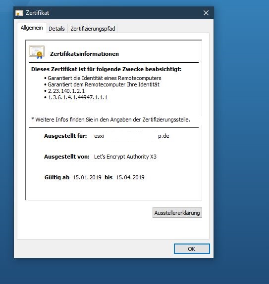 Also meine esxi 6.7 innnstallation hat ein Zert von letsencrypt.