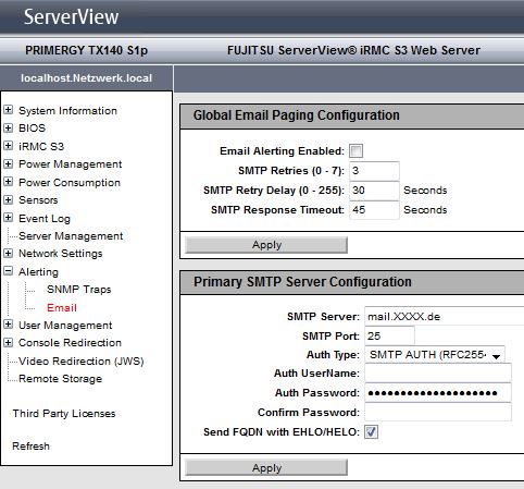 Das Handbuch zum iRMC s2/s3 beschreibt ab Kapitel 7.13.3 - E-Mail Benachrichtigung- Lokale E-Mail-Benachrichtigung konfigurieren (Seite 265 von 446 ff.) die Parameter. Vielleicht hilft das ja schon weiter.