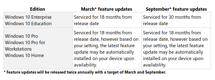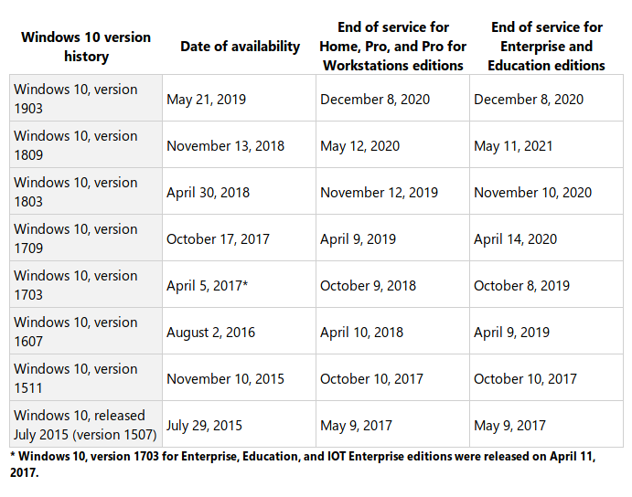 Der Support läuft für jedes Windows 10 Release 18 oder 30 Monate: