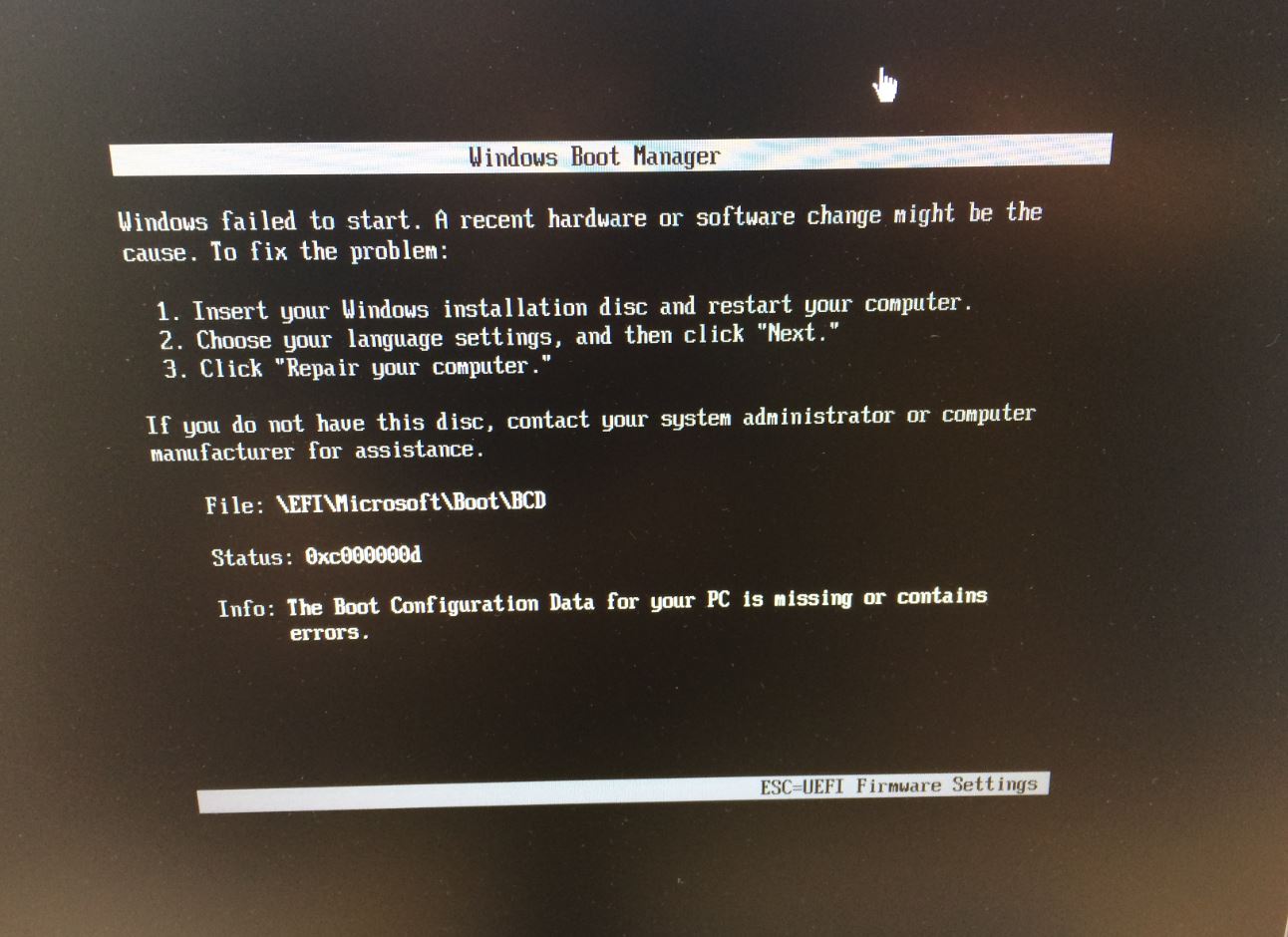 2. Die EFI-Variante des Windows Bootloaders fängt mit dem Laden an und wirft dann den Fehler aus: Der EFI BCD ist defekt.