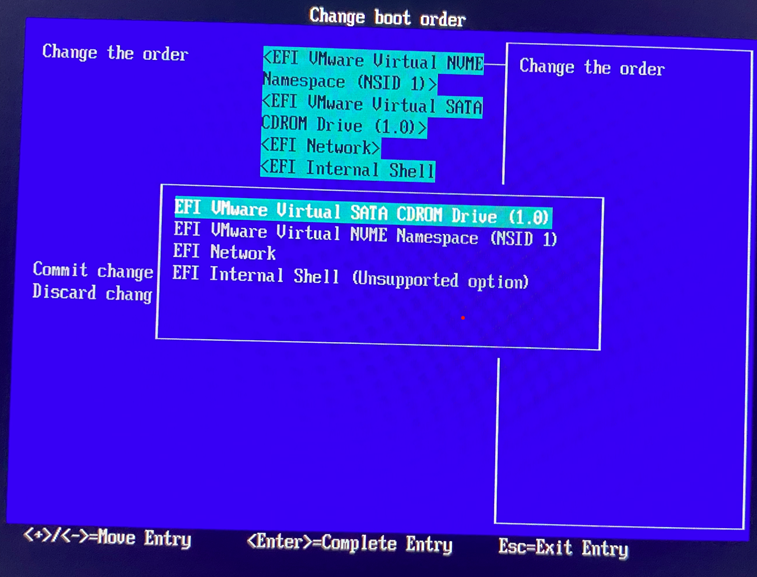Du musst in der VM ins vBIOS, um dort dann die Bootreihenfolge einstellen. Einfach bei ausgeschalteter VM rechstklick und "Power on Firmware" ausführen.