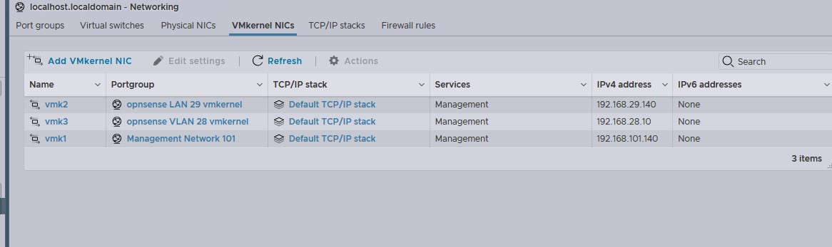 Zum Verständnis. Der 101er Kernel ist an der Konsole für management angegeben. 28 ist für den NFS Filer, und darf nicht raus telefonieren. 29 ist mein LAN/VLAN, da greife ich auch auf das Admin Interface zu.