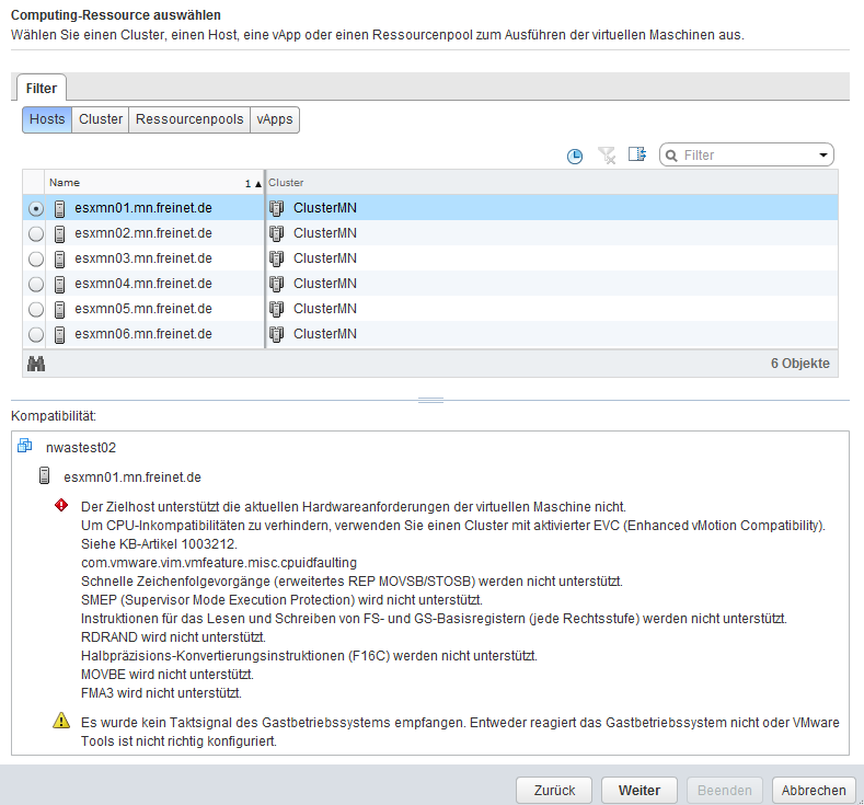 Sind alle Hosts im Cluster identisch (Geraete-Typ, Prozessor, ...)