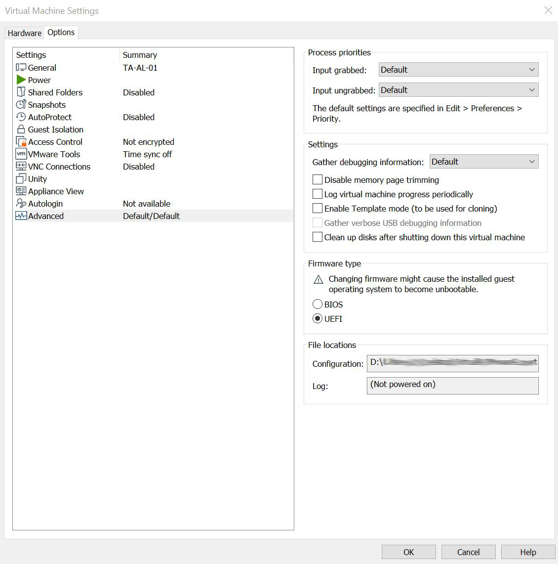 Jetzt habe ich es wieder deaktiviert und in die vmx-Datei den angegebenen Eintrag hinzugefügt.